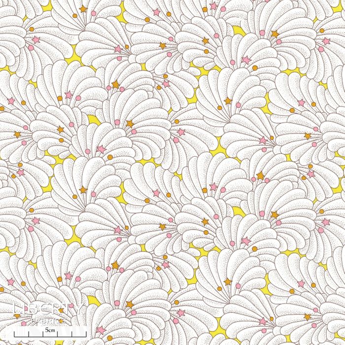 Created and printed by Liberty in 1979, Poiret Shell is a charming conversational featuring cloud-shaped seashells adorned with tiny bundles of spots and stars. An idyllic embrace between sea and sky, the design was chosen to represent the fanciful illustrations of artist Raoul Dufy whose work graced one of Liberty’ s capsule collections during the 1970s.