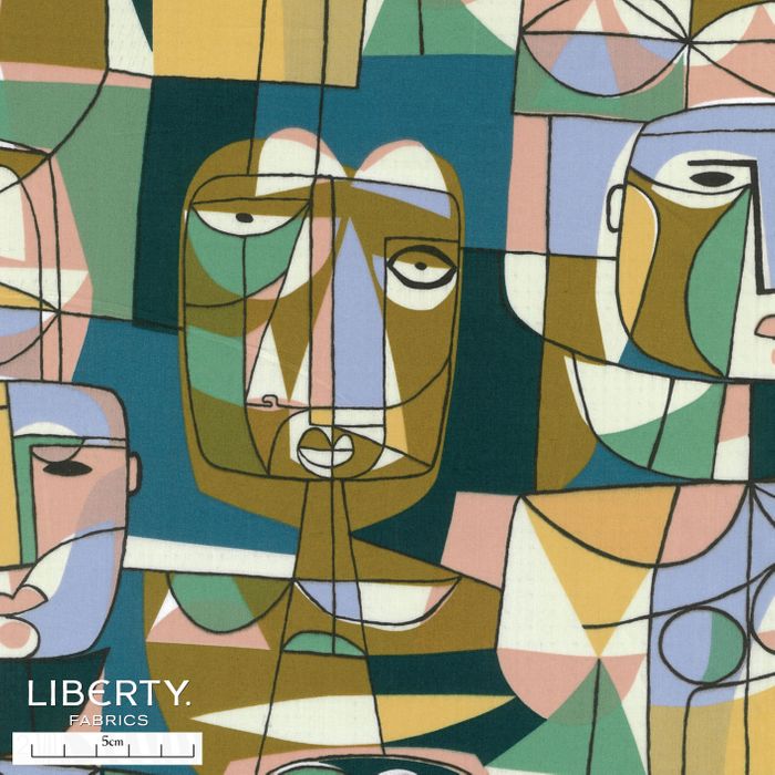 Carnaby Cast is an ode to the distinctive handwriting of Robert Stewart whose cutting-edge designs transformed Liberty fabrics during the 1950s. This print features playful abstract faces from his wall-hanging designs, brought to life in this large-scale conversational which has a characteristically graphic feel.