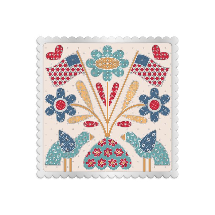 The Americana Needle & Scissor Minder by Lori Holt of Bee in my Bonnet holds your needles and scissors in place on your hoop. The dependable magnets attach securely to your design board. It can also double as a refrigerator magnet. Size is approximately 4" x 4".
