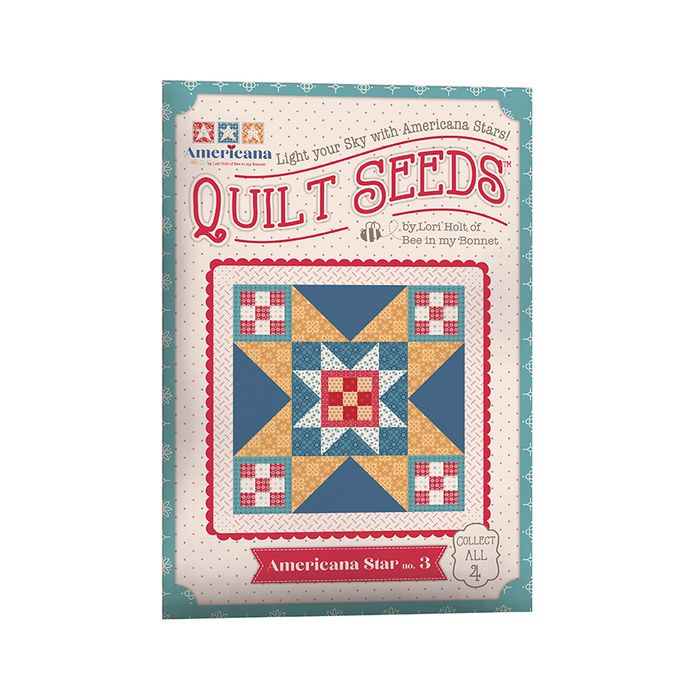 The Americana Quilt Seeds Patterns by Lori Holt of Bee in my Bonnet is a pattern series for 4 different star quilt blocks. Each seed packet has instructions to make 1 block – all you have to do is add fabric. A paper pattern is included in each packet. No templates are required. Each block finishes at 28" x 28" and uses traditional piecing techniques. Collect all 4 of these beautiful seed packets in their keepsake packaging. This would make a great kit or block of the month. Optional quilt finishing instructions will be included in each packet. Seed packet size is approximately 6 1/2" x 9 1/2".