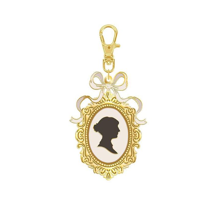 The Jane Austen Silhouette Charm is perfect for zipper pulls, scissor fobs, or keychains. Made of cast metal and enamel. Approximate size is 1 3/4" x 2 1/2". Official licensed product.