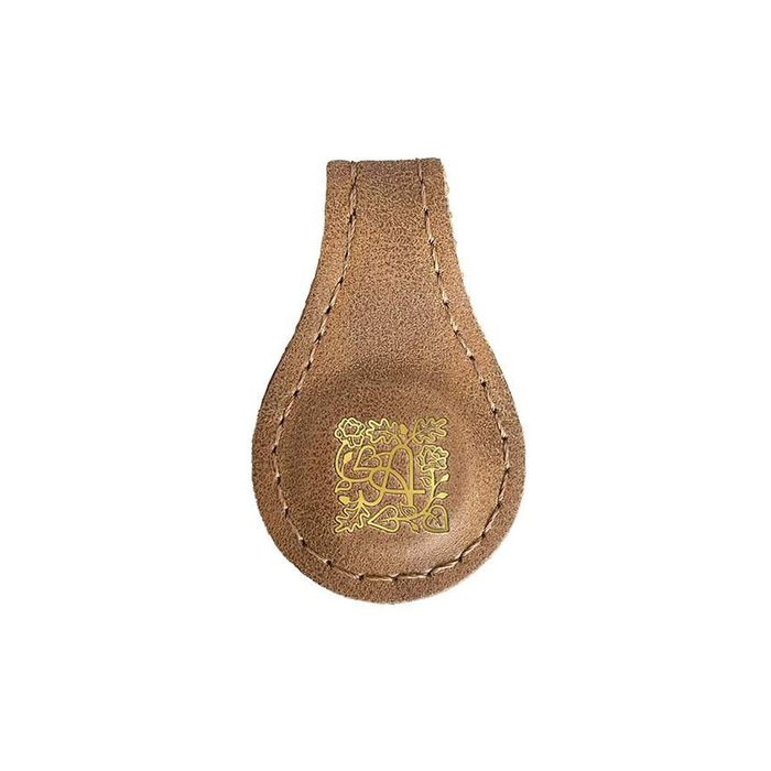 The Jane Austen Magnetic Leather Bookmark features rich textured leather with elegant foil stamped images of the Jane Austen's House 250 Years of Jane Austen logo and the Jane Austen family crest of a stag. It contains strong magnets for marking book pages. Size is approximately 1 1/4" x 2" when folded in half. Official licensed product.