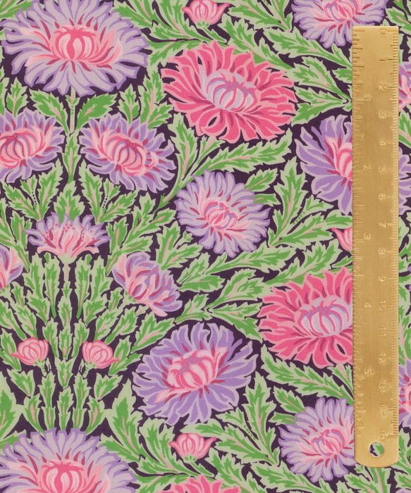 Created in 1991 in the style of an Art Nouveau floral, this luxurious pattern boasts a flourishing flow of synchronised chrysanthemums. Originally printed for Liber ty as a furnishing fabric, Cynthia Nouveau has been reimagined into a richly hued botanical, exuding timeless sophistication and elegance.