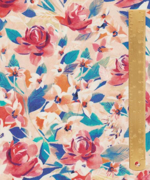 Created during a studio visit to a watercolour workshop, Flourishing Bloom seamlessly combines hand-craf ted techniques with digital media. Inspired by floral still life arrangements, the inky watercolours and use of masking fluid create an expressionistic medley of brushstroke rose bouquets which seem to be illuminated from within.