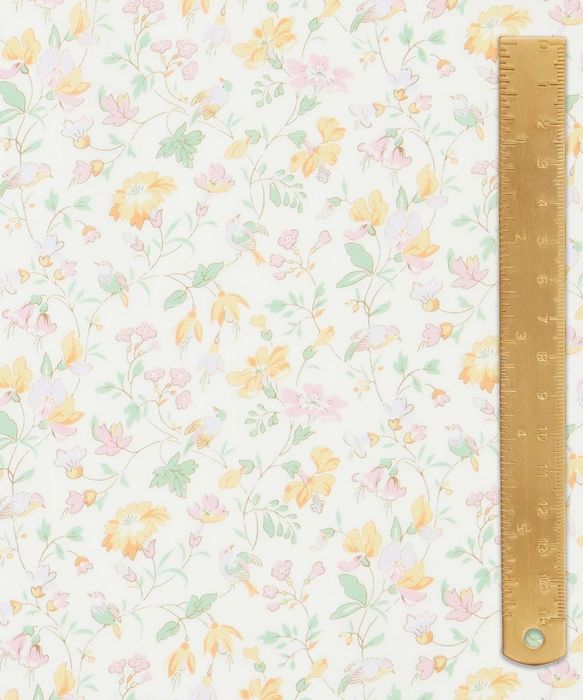 Originally hand-painted in the early 1990s, Iveta’ s Garden was inspired by the delicate linework typically found in 1920s Liberty pattern books. Gently cascading in the soft summer breeze, this romantic garden features trailing flowers of hibiscus, fuchsia, primrose and sweet pea. Look closely to distinguish tiny camouflaged birds gracefully nestled among the blossoming branches.