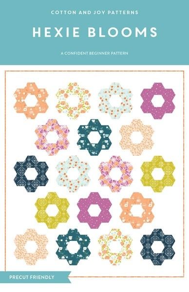 The Hexie Blooms Quilt by Fran Gulick of Cotton and Joy is a modern take on the classic Grandmother’ s Flower Garden quilts! This block-based pattern uses NO y-seams and no hand sewing, and it includes three design options for maximum flexibility– sew a scrappy version with fabric from your stash or your favorite precut, use FQs for a stunning full bloom version, or use yardage for a classic 2-color version. Hexie Blooms is the perfect pattern for confident beginners who are comfortable with matching seams and are ready to give templates or specialty rulers a try. Pattern includes helpful diagrams, detailed instructions, and a Color-Your-Own page to help you decide your fabric choices. Pattern includes instructions for Baby (45? x 45?), Throw (58? x 65?), Twin (72? x 90?), and Queen (90? x 100?) sizes.