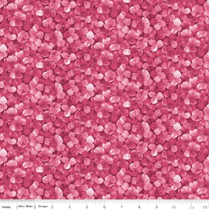 HYDRANGEAS IN THE GARDEN ALLOVER FLORAL RASPBERRY