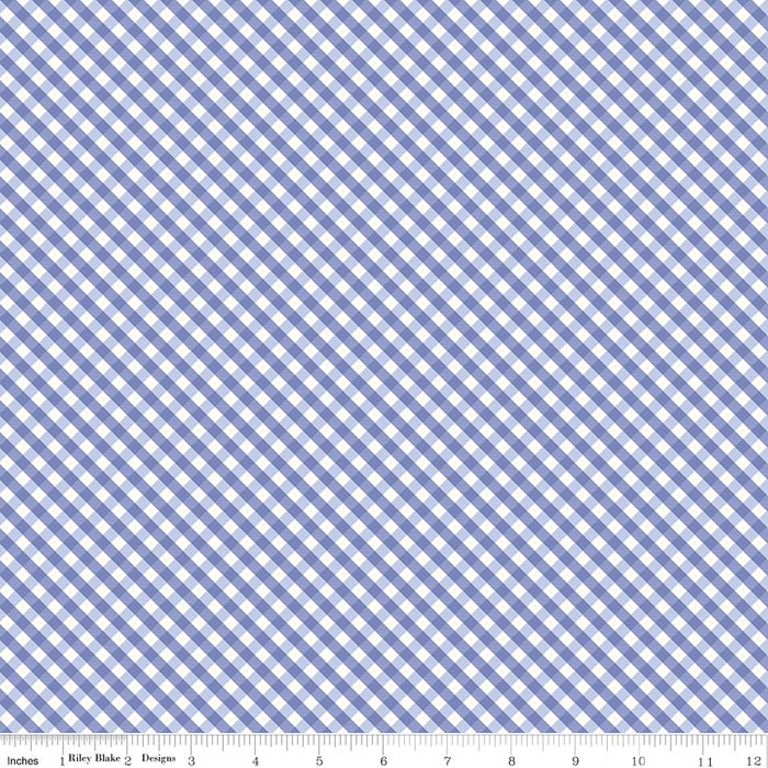 HYDRANGEAS IN THE GARDEN GINGHAM PERIWINKLE