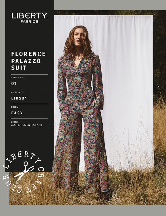 Join the #LibertyCraftClub with the Florence Palazzo Suit sewing pattern from Liberty Fabrics. The new Liberty Fabrics dressmaking patterns draw inspiration from our fashion archive, with contemporary style details offering a fresh twist on classic vintage shapes. The Florence Palazzo Suit creates a tie-front top with either long or short sleeves, paired with wide-leg palazzo pants or shorts – a versatile and fluid modern silhouette infused with ‘ 70s-inflected cool. Make this Liberty pattern with silk, linen, light velvet or Tana Lawn cotton, in sizes 6-22.