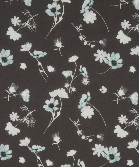 The warmth of summer sunshine lingers in Nocturne, a design inspired by a 1950s silhouette flower from the Liberty archive. Created using the cyanotype process, it features the most beautiful motifs selected from over thirty experimental prints. Transparent bluebells, gerberas, and English wildflowers tumble across the fabric in a loosely scattered arrangement, complemented by hand-painted flowers for added depth.