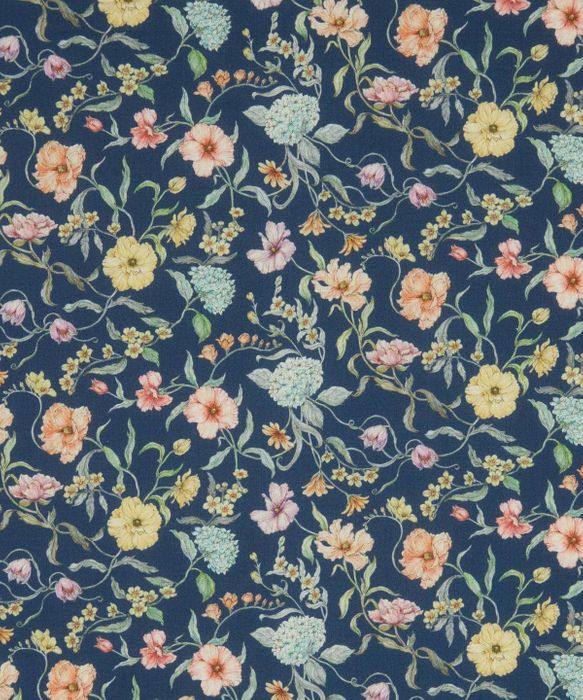 Battersea Blooms draws inspiration from Liberty’ s 1990s archival scarves and showcases floating curly botanical motifs that reflect the Arts and Crafts style. Hand drawn with pencil and watercolour, it highlights arrowwood, blue star, chickweed, freesia, fritillary, forget me nots, and buttercups, flourishing in anticipation of spring’ s arrival.