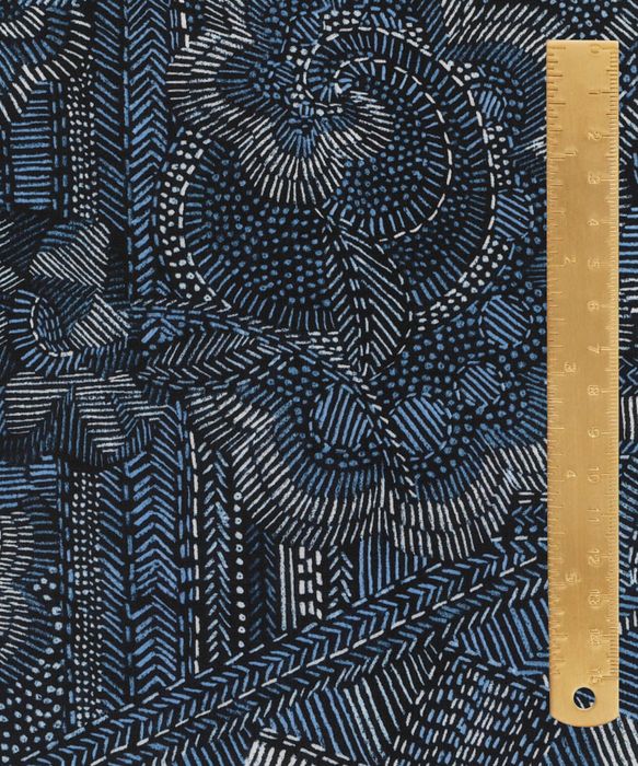 Created in the Liberty design studio using pencil crayon on dark coloured paper, Disco Fever explores the colourful embroideries used to embellish outfits worn during the 1970s disco nights. The result is a textural, hand-stitched effect, that showcases a captivating array of overlapping geometric and floral motifs.