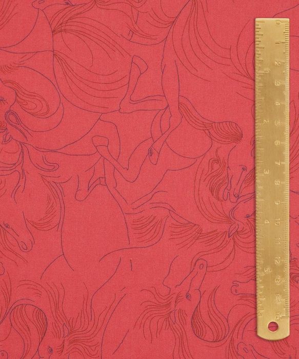 The outlines of horses are disguised in this all-over linear pattern. On closer inspection you can spot the faces, manes, and hooves that make up the horses in Naz. This design was originally developed for the Spring Summer 2005 collection.