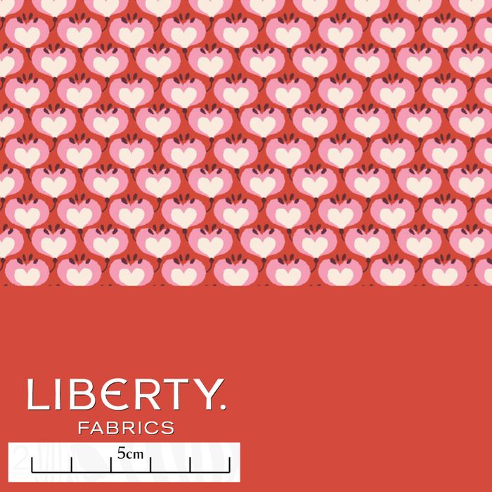 Timeless and effortlessly chic, Enamoured is a reinterpretation of a small hand-painted artwork unearthed in the Liberty archive. The original geometric flowers have been cleverly transformed into heart shapes, and neatly arranged in alternating rows to create a charming, grid-like repeat structure.