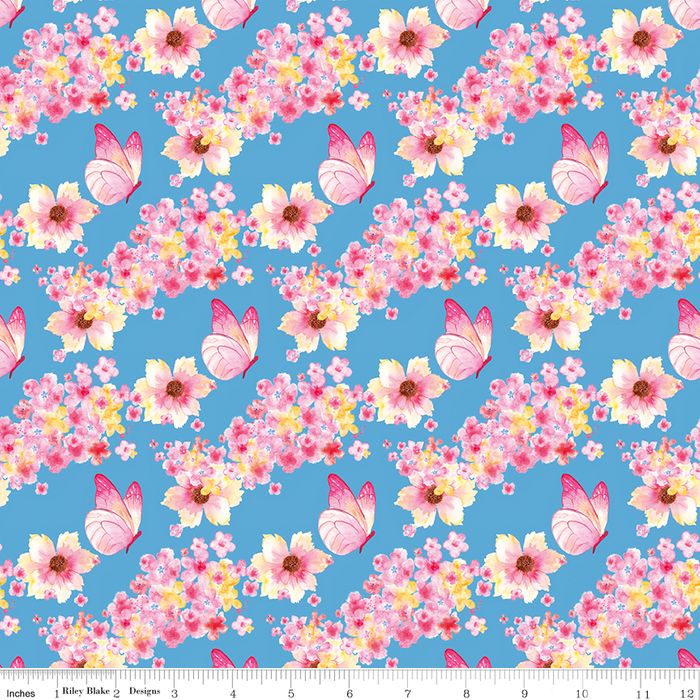 PAINTED PETALS BUTTERFLY FLORAL BLUE