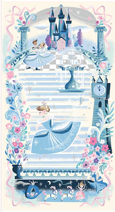 Wishes by Jill Howarth for Riley Blake Designs is great for quilting, apparel and home decor. This panel features Cinderella running away from the ball and losing her glass slipper with silver sparkle accents. Panel size is 23 1/2" x 43 1/2".