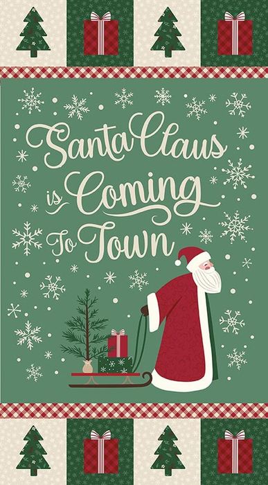 Christmas Time by Dani Mogstad for Riley Blake Designs is great for quilting, apparel and home decor. This panel features a snowy scene with santa and the phrase, "Santa Claus is Coming to Town." Panel size is 23 1/2" x 43 1/2".