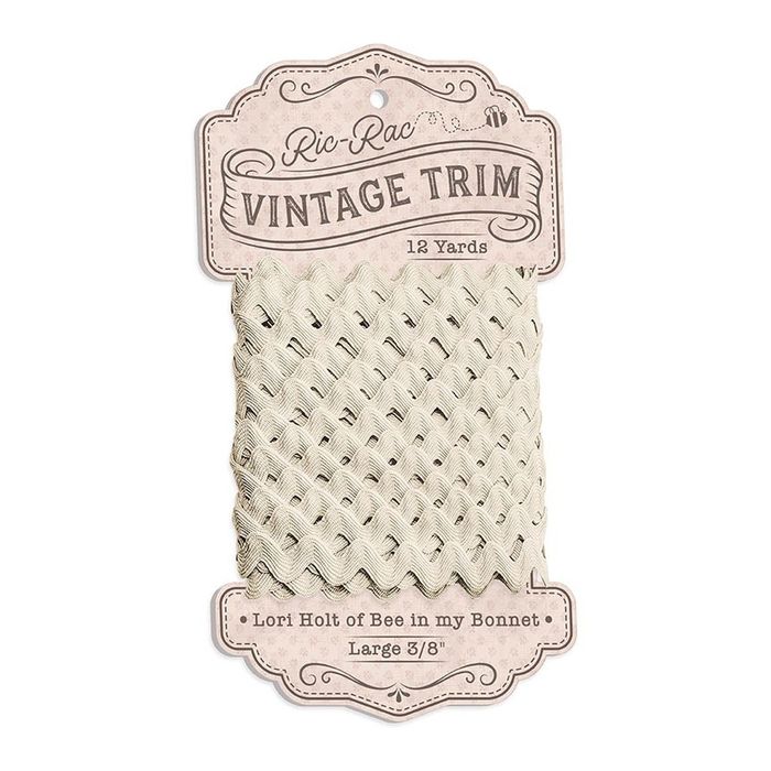 Large Vintage Trim by Lori Holt of Bee in my Bonnet will add just the right touch of vintage to your projects. Each card holds 12 yards of 5/8" trim.