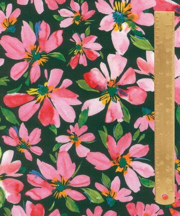 Hand-painted in the Liberty studio, this vibrant pattern is adorned with abstract cosmos flowers, rendered in delicate watercolour. The design captures a sense of spontaneity, with loosely applied brushstrokes and expressive mark-making that evoke subtle variations in light, hue, and texture.