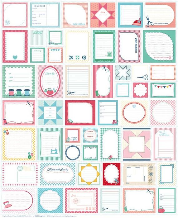 Quilt Labels by the RBD Designers for Riley Blake Designs are great for labeling your projects. Panel includes 52 labels in sizes varying from 3 1/2" to 7". Panel size is 35 1/2" x 43 1/2".