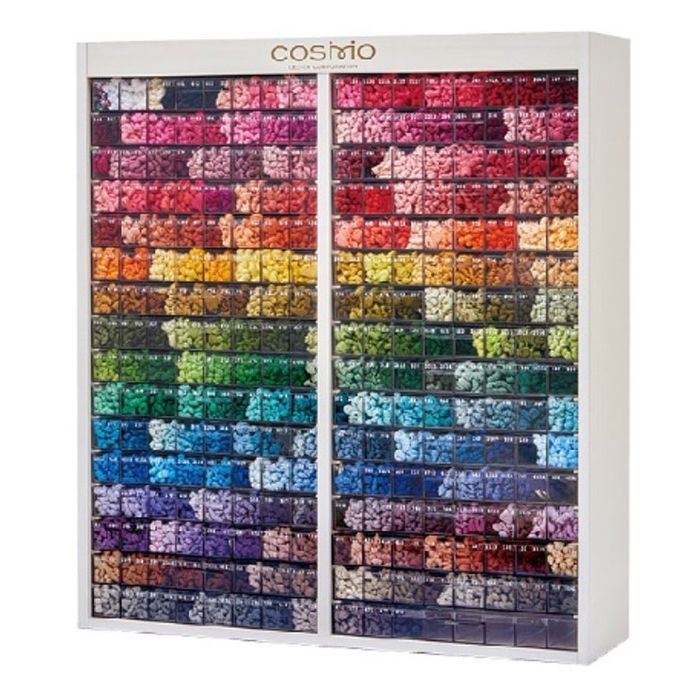 - Size H:50cm W:44cm D:24cm - Drawer slot capacity: 24 skeins - 9 clear drawer with 9 slots per cabinet - Contains 6 Skeins of each colour
